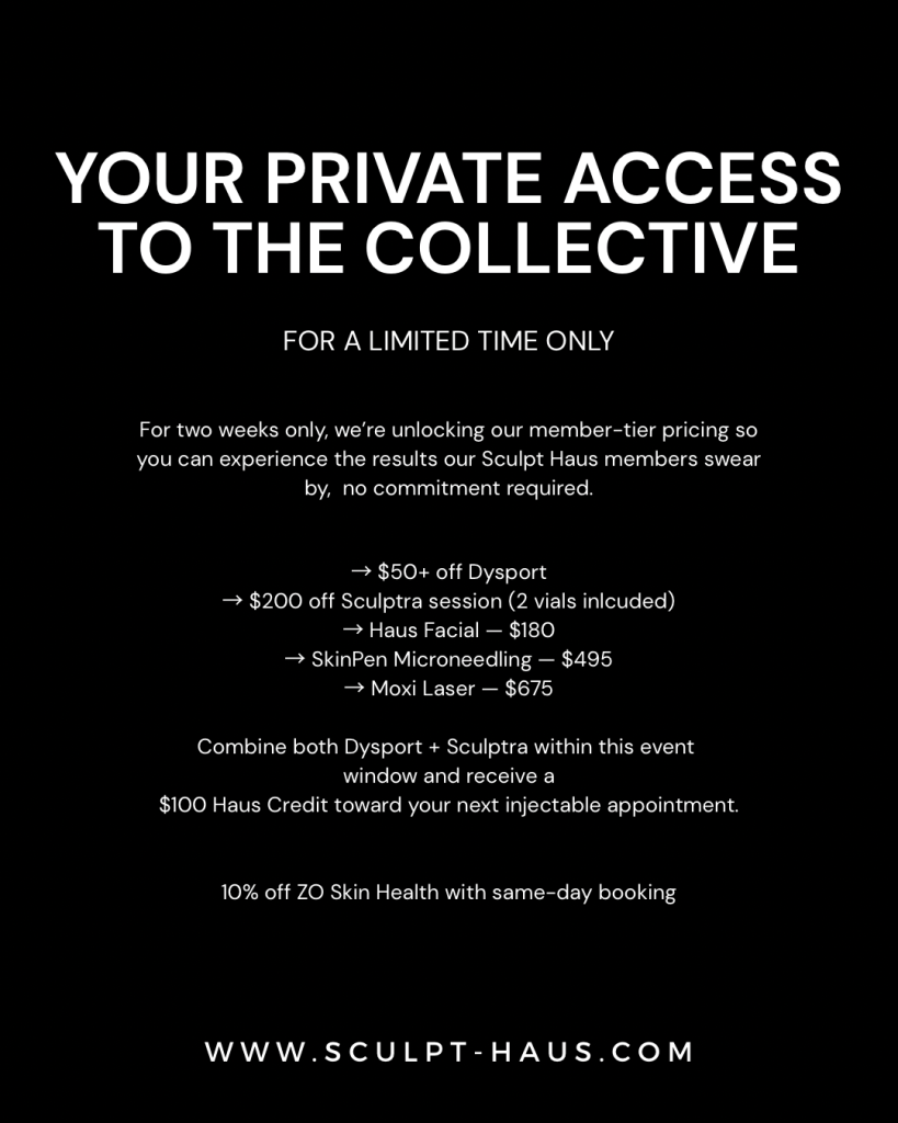 Sculpt Haus was created to give our clients a one-on-one concierge medical spa experience. With an ample amount of time devoted to each appointment, you will feel as if the spa is dedicated to you alone. From the moment you walk in our doors, to your initial consultation, followed by your customized treatment plan, every detail of your experience has been meticulously considered. With the latest technology, skilled nurses, and overall boutique experience, we are here to provide unrivaled aesthetic services.